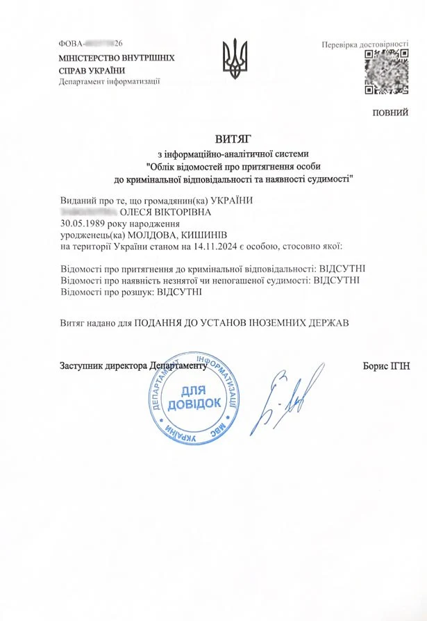 Справка о несудимости с мокрой печатью является официальным документом, который подтверждает, что лицо не имеет судимости или не привлекалось к уголовной ответственности на территории Украины.